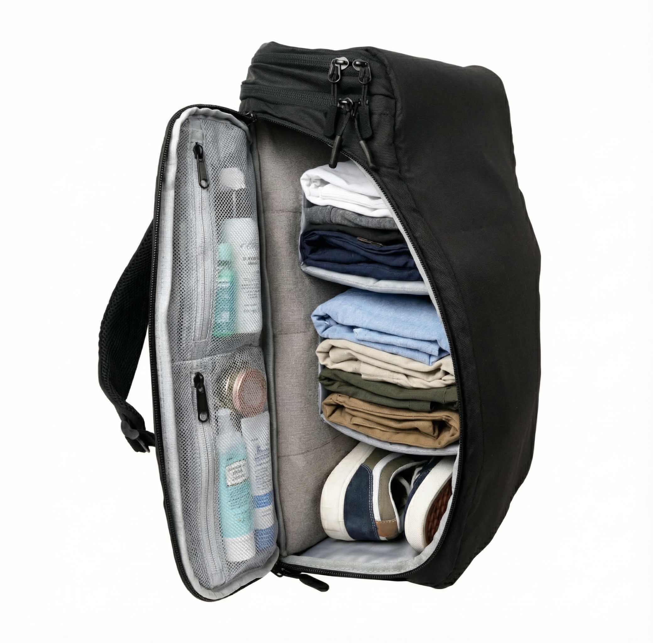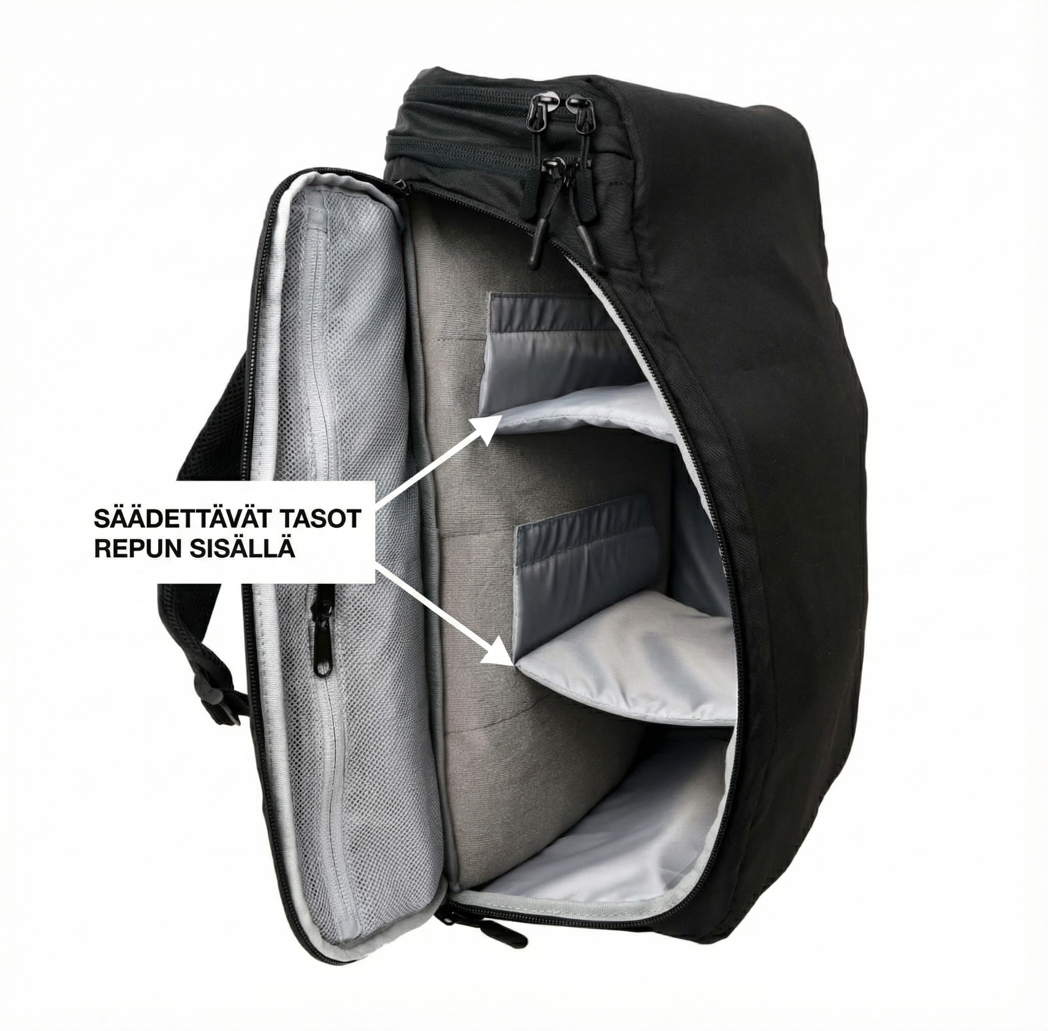 Huvudfacket har två justerbara avdelare som gör att du kan anpassa utrymmet efter dina behov och hålla kläder, elektronik och andra saker snyggt organiserade. Detta gör ryggsäcken särskilt lämplig för kortare resor och som handbagage.
