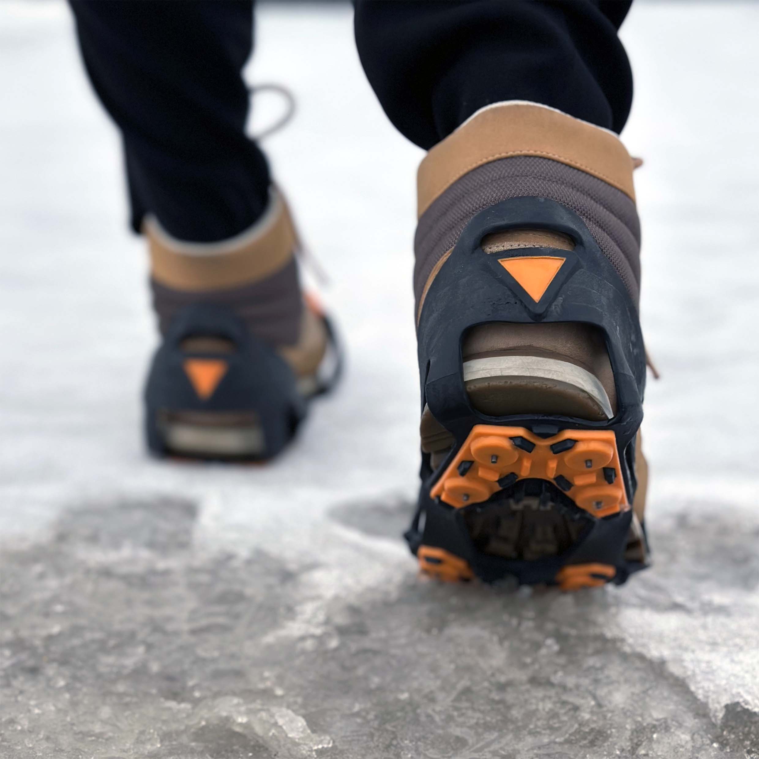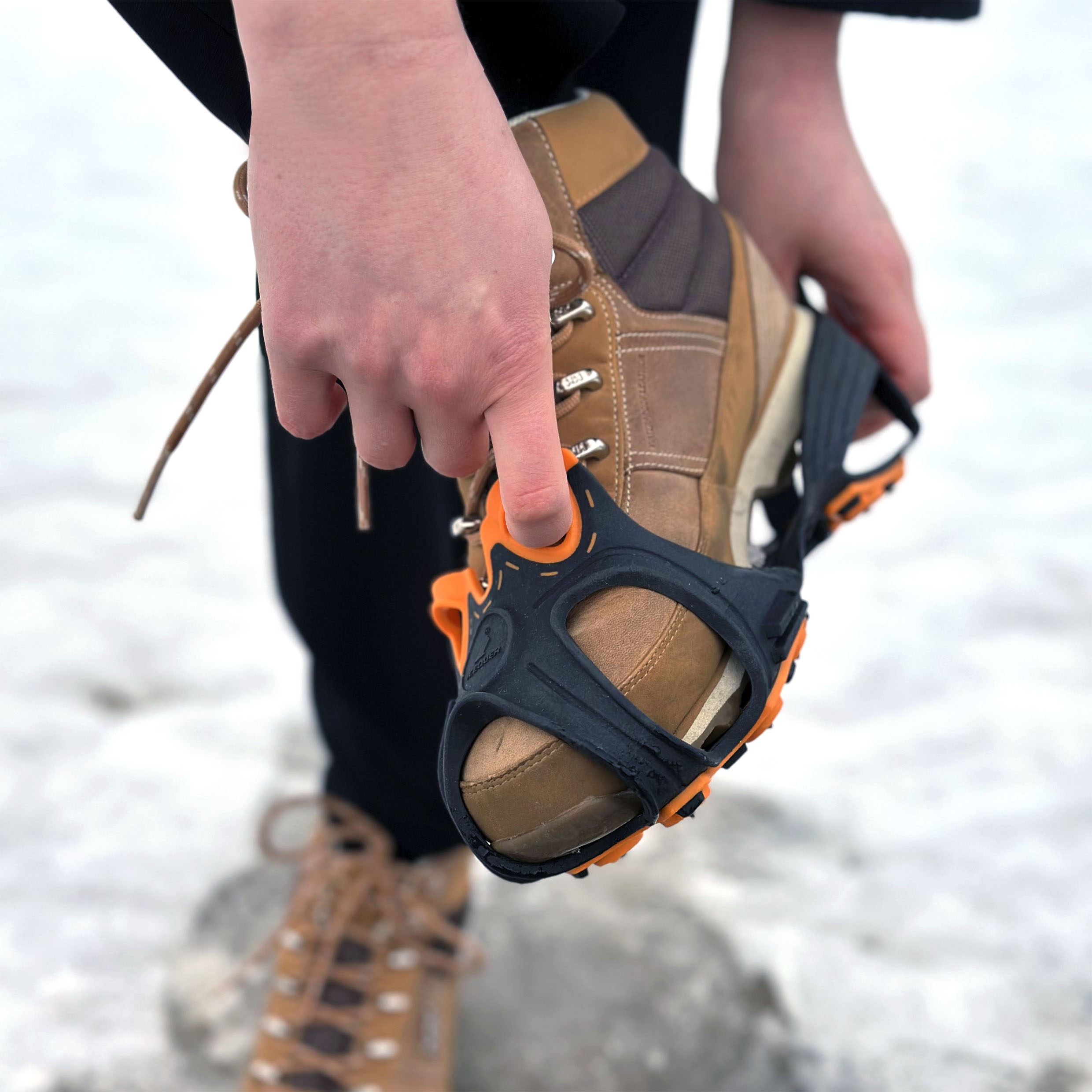 Helposti kengän päälle vedettävät liukuesteet. Ergonomiset sormilenkit helpottavat pukemista. Pohjassa 5 paria pitäviä nastoja (10kpl). Käyttölämpötila -40C saakka.