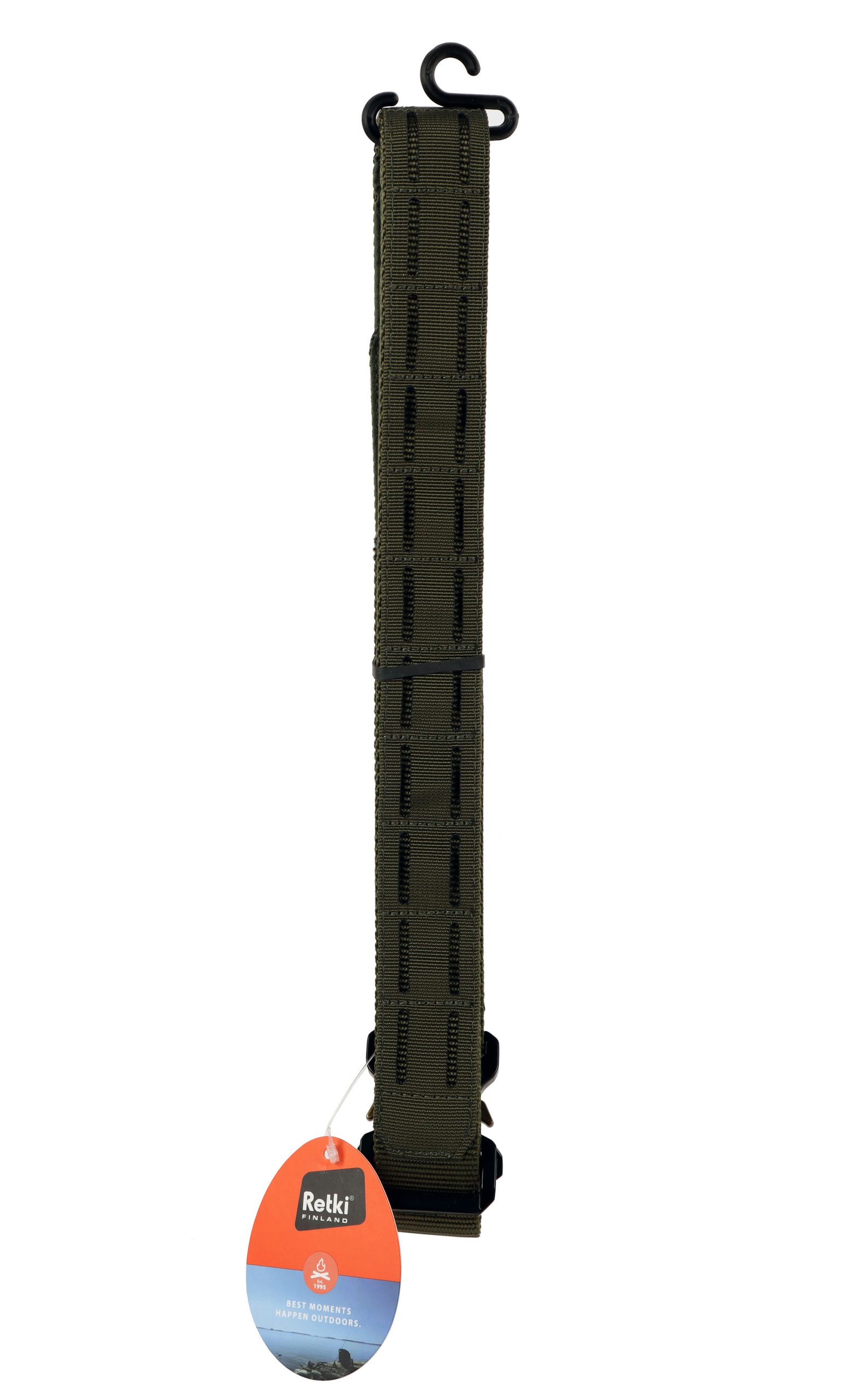 Kestävä Trooper varustevyö eräilyyn ja vapaa-aikaan. Metallinen pikasolki, säädettävä pituus ja tukeva polyesterirakenne.